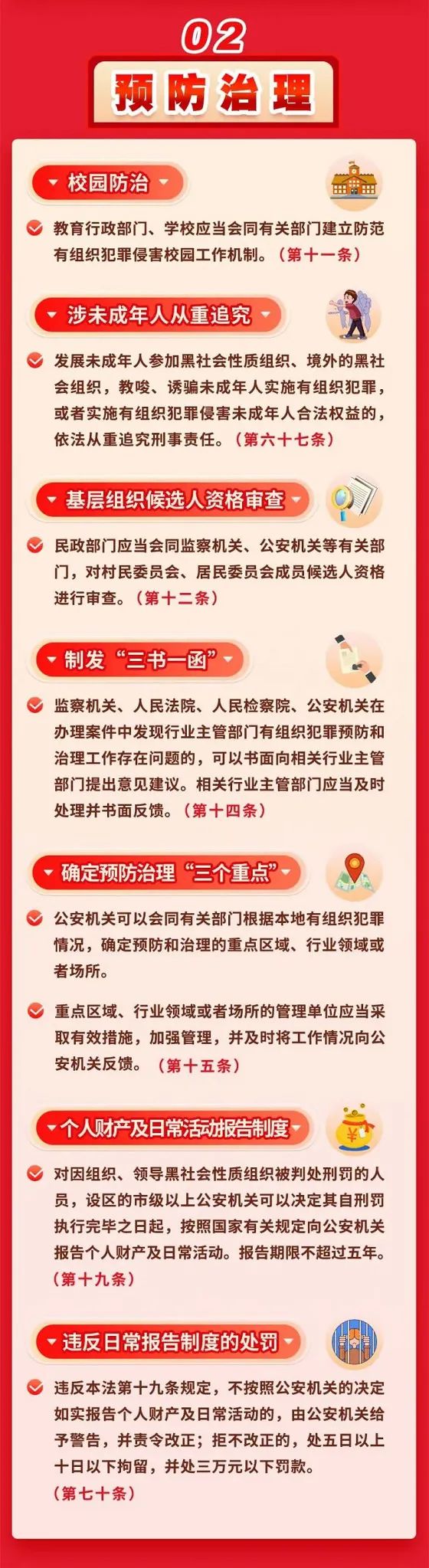 反有组织犯罪法坚持以人民为中心,坚持系统治理、综合治理、源头治理,坚持与加强基层组织建设相结合,是一部预防和惩治黑恶犯罪的专门性、综合性法律。